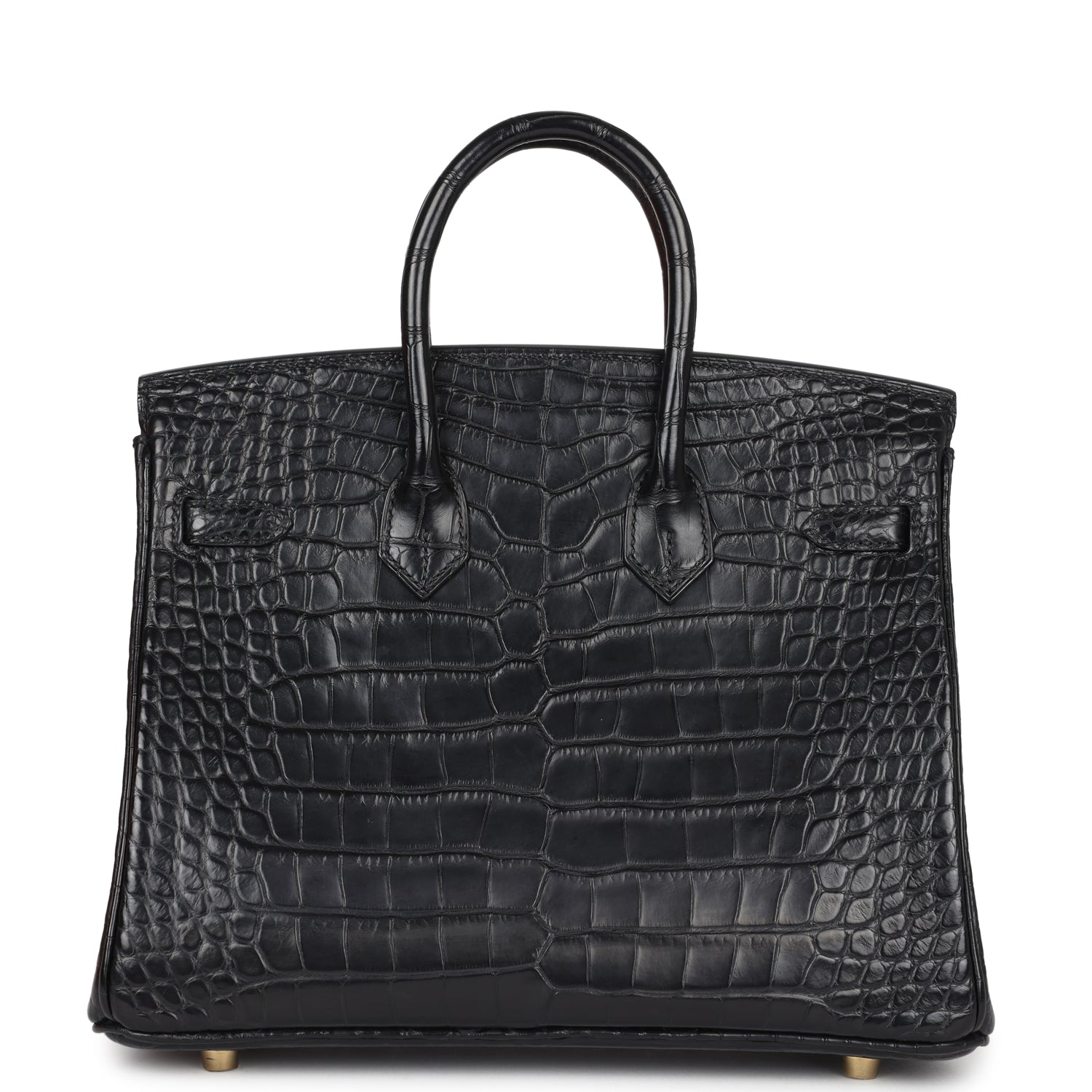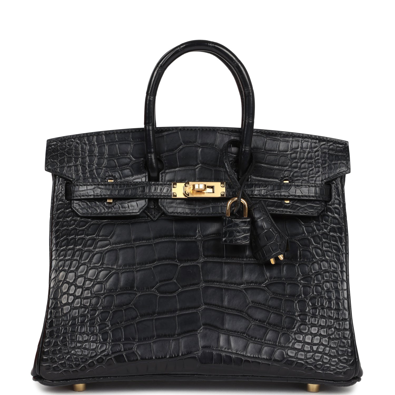This Birkin is in Black Matte Alligator Mississippiensis leather with Gold hardware, tonal stitching, front flap with two straps, front toggle closure, clochette with lock and two keys, and double rolled handles.