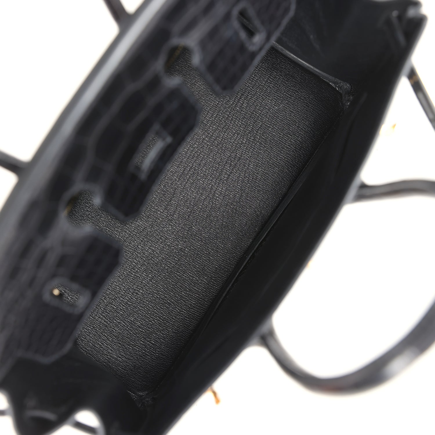 The interior is lined with Black chevre and has one zip pocket with an Hermès engraved zipper pull and an open pocket on the opposite side.