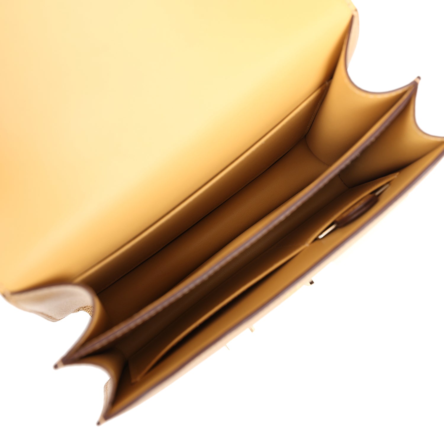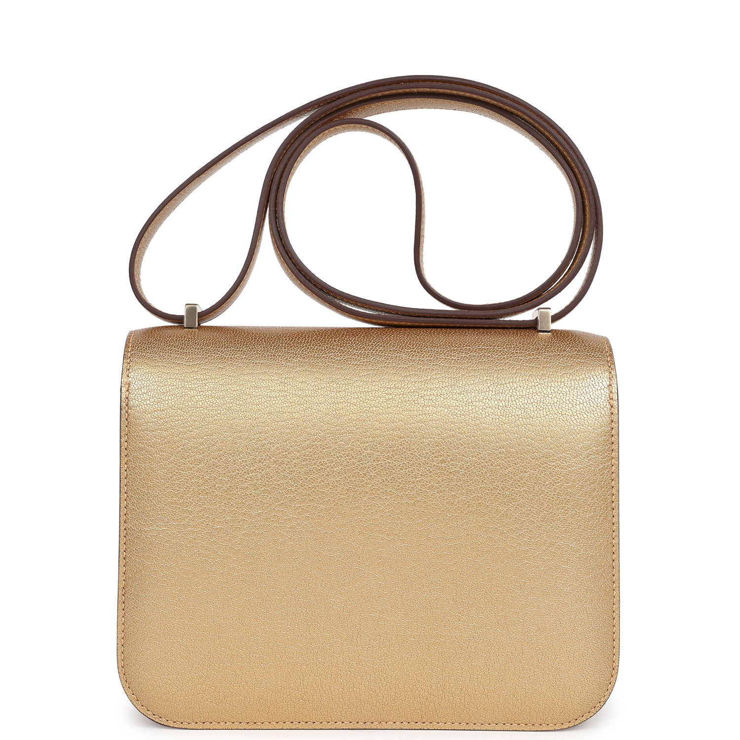 This limited edition Constance is inDore Chamkilight chevrewith permabrass hardwareand has tonal stitching, a permabrass “H” snap lock closure and adjustable shoulder strap.