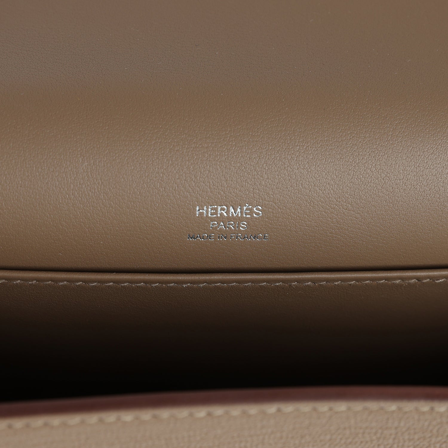 The interior is lined withEtoupe leatherwith one slip pocket on the back wall and two slip pockets on the front wall.