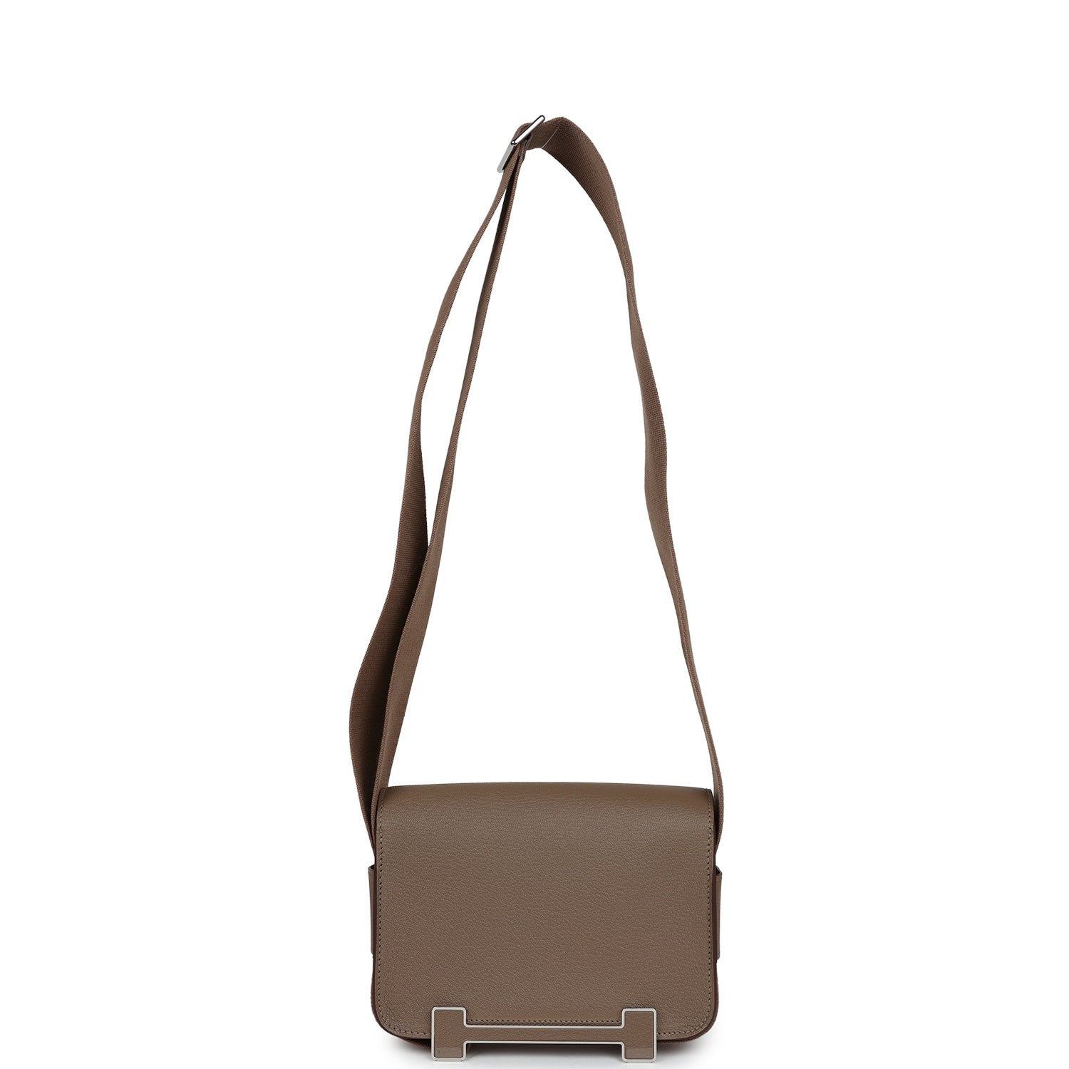 ThisGeta is inEtoupechevre leather withpalladium hardware and hastonal stitching, magnetic flap closure and adjustable shoulder strap.