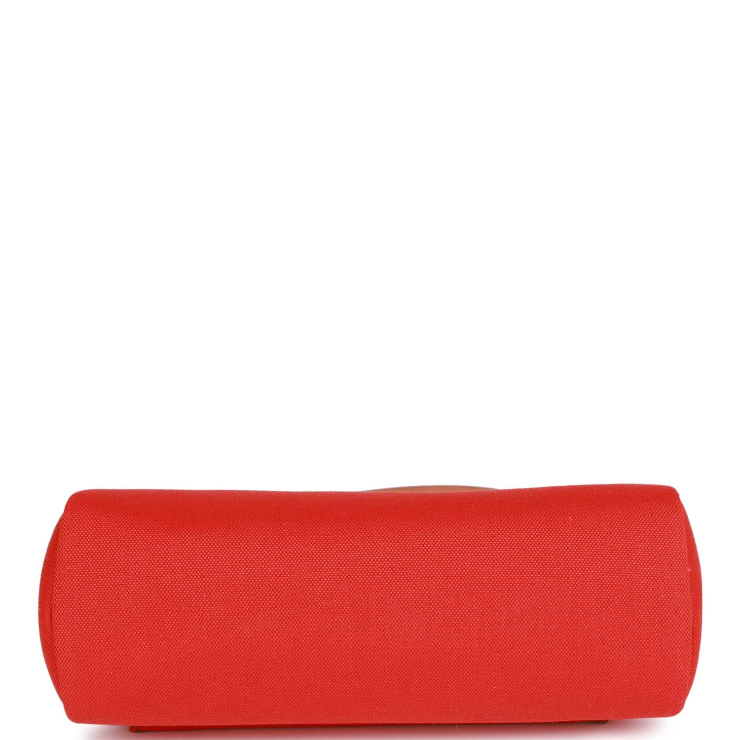 ThisHerbag Zip PM is ofCapucine Toile H andFauve Berline Hunter leather with palladiumhardware and hastonal stitching, front flap, two straps with centerclou de selle closure, clochette with lock and two keys, back zip pocket, single rolled handle and shoulder strap.