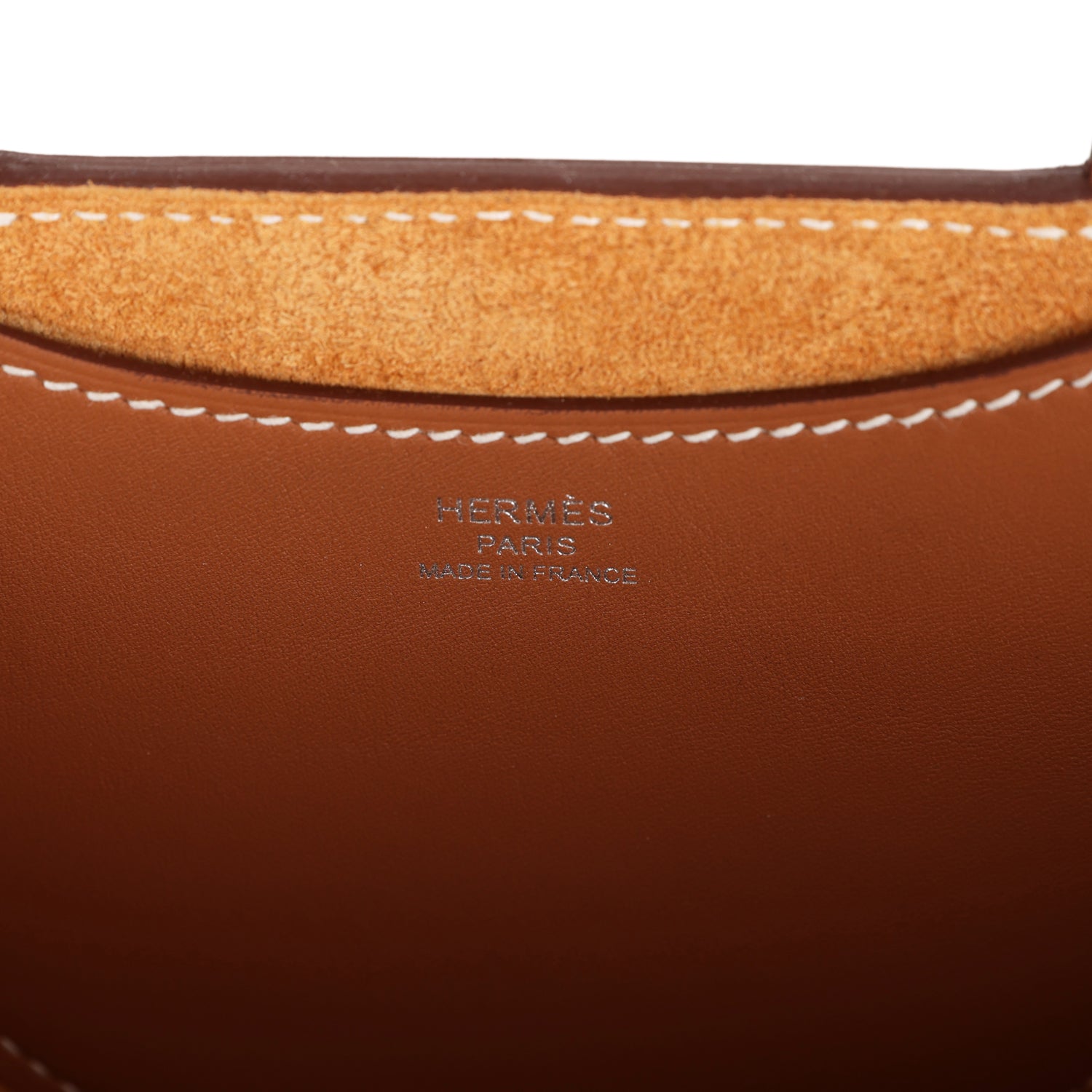 This In-The-Loop 18 is in Gold Clemence and Swift leather with palladium hardware and hascontrast stitching, two Chaine d’Ancre shaped handles, single interior pocket, and Chaine d’Ancre shaped hook closure.