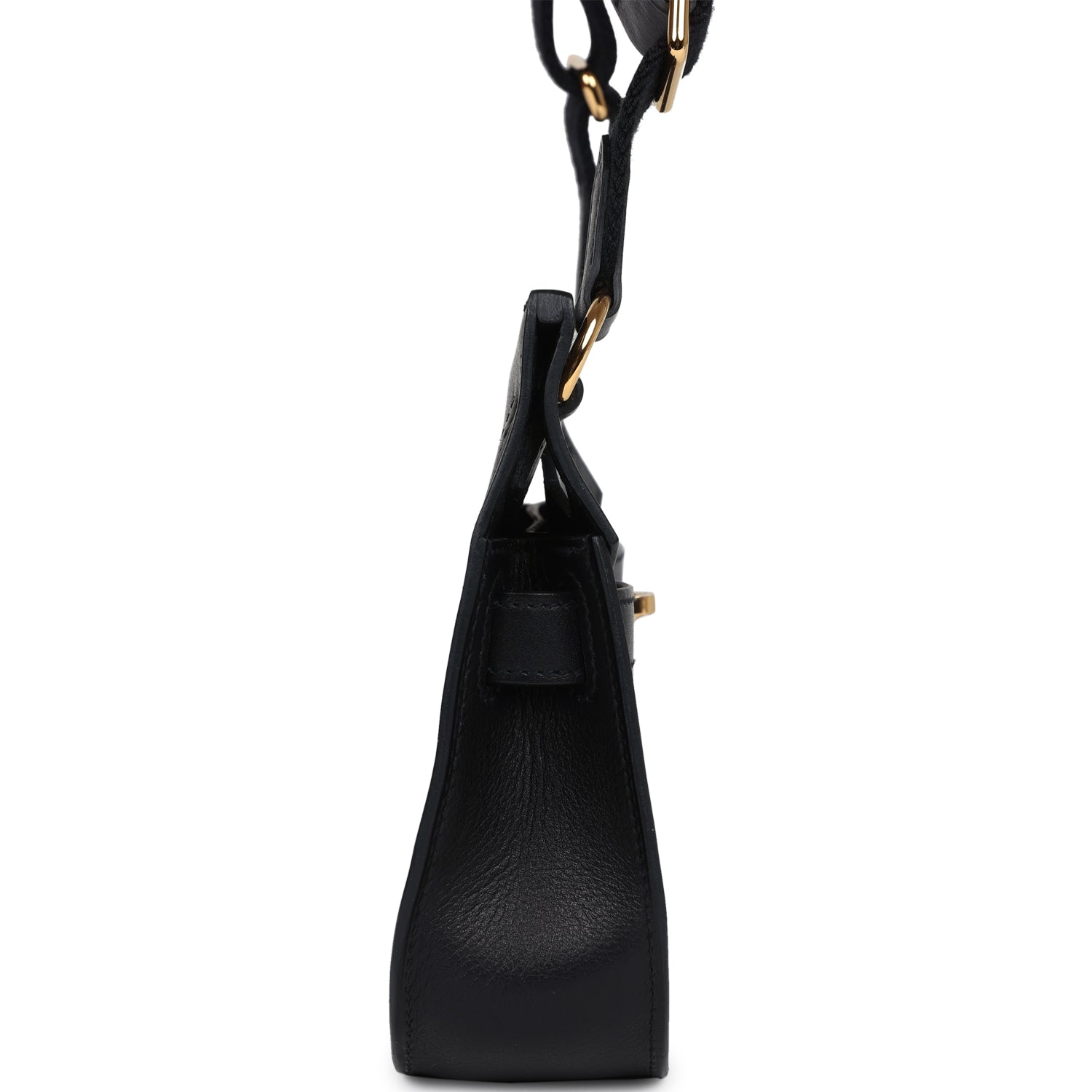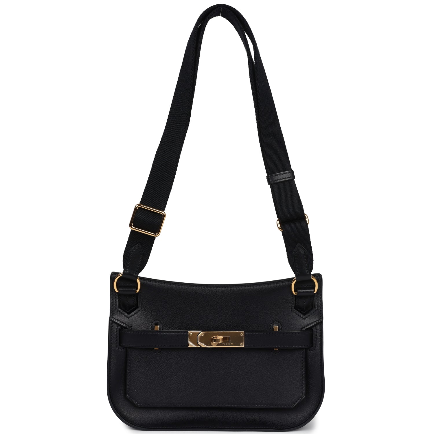 This Jypsiere mini is in Black evercolor leather with gold hardware andhas tonal stitching, a single flap, two pull straps, turnlock closure, and an adjustable wooly shoulder strap.