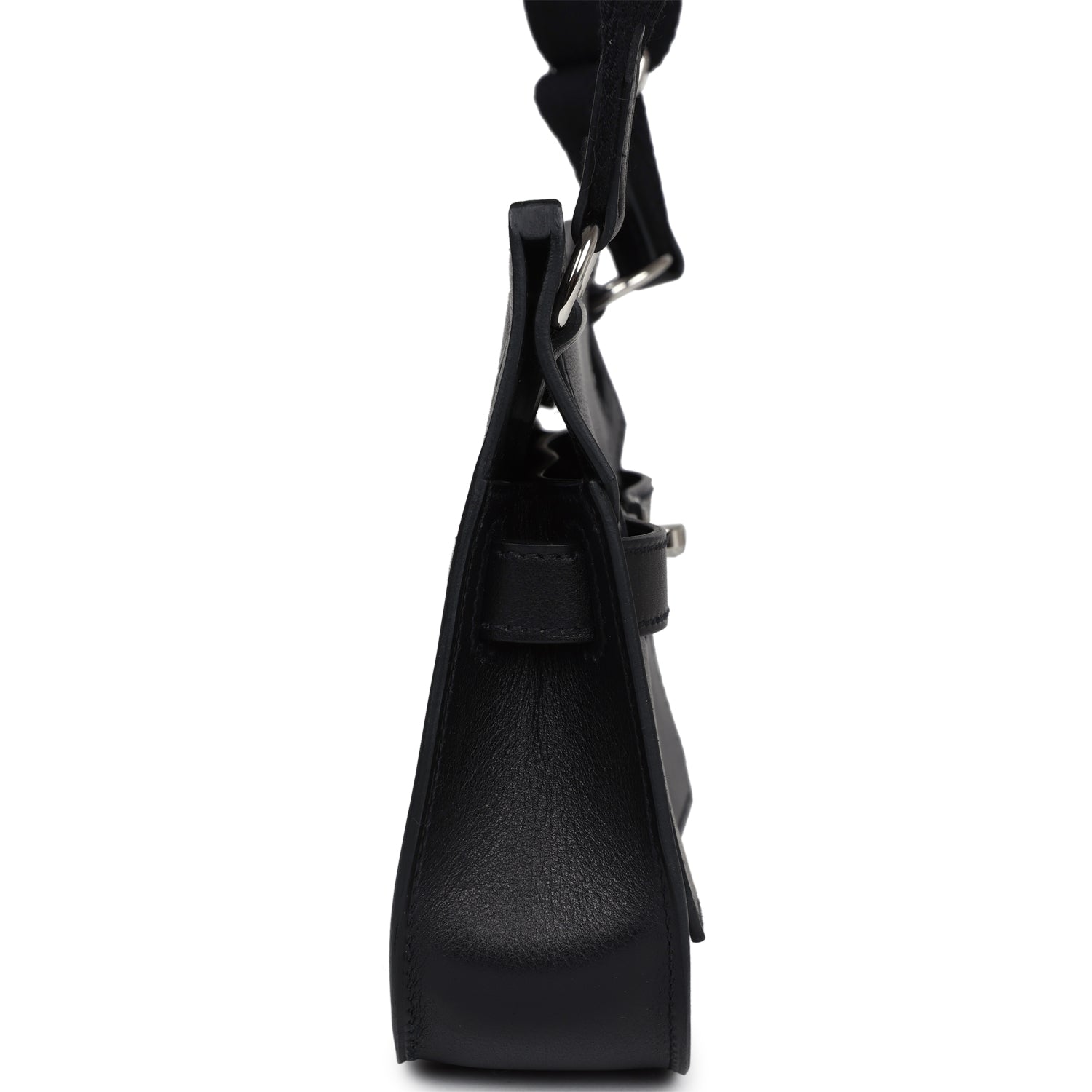 This Jypsiere mini is in Black evercolor leather with palladium hardware andhas tonal stitching, a single flap, two pull straps, turnlock closure, and an adjustable wooly shoulder strap.