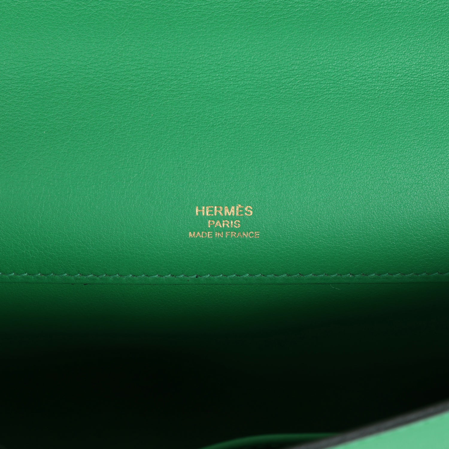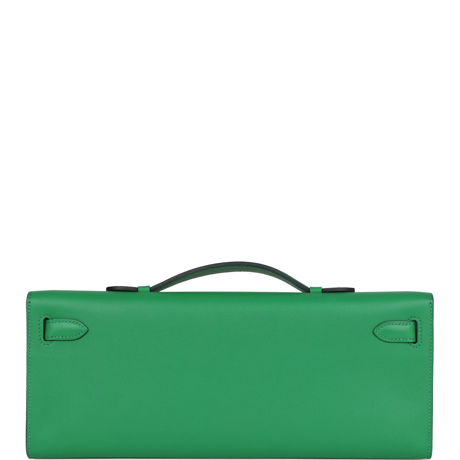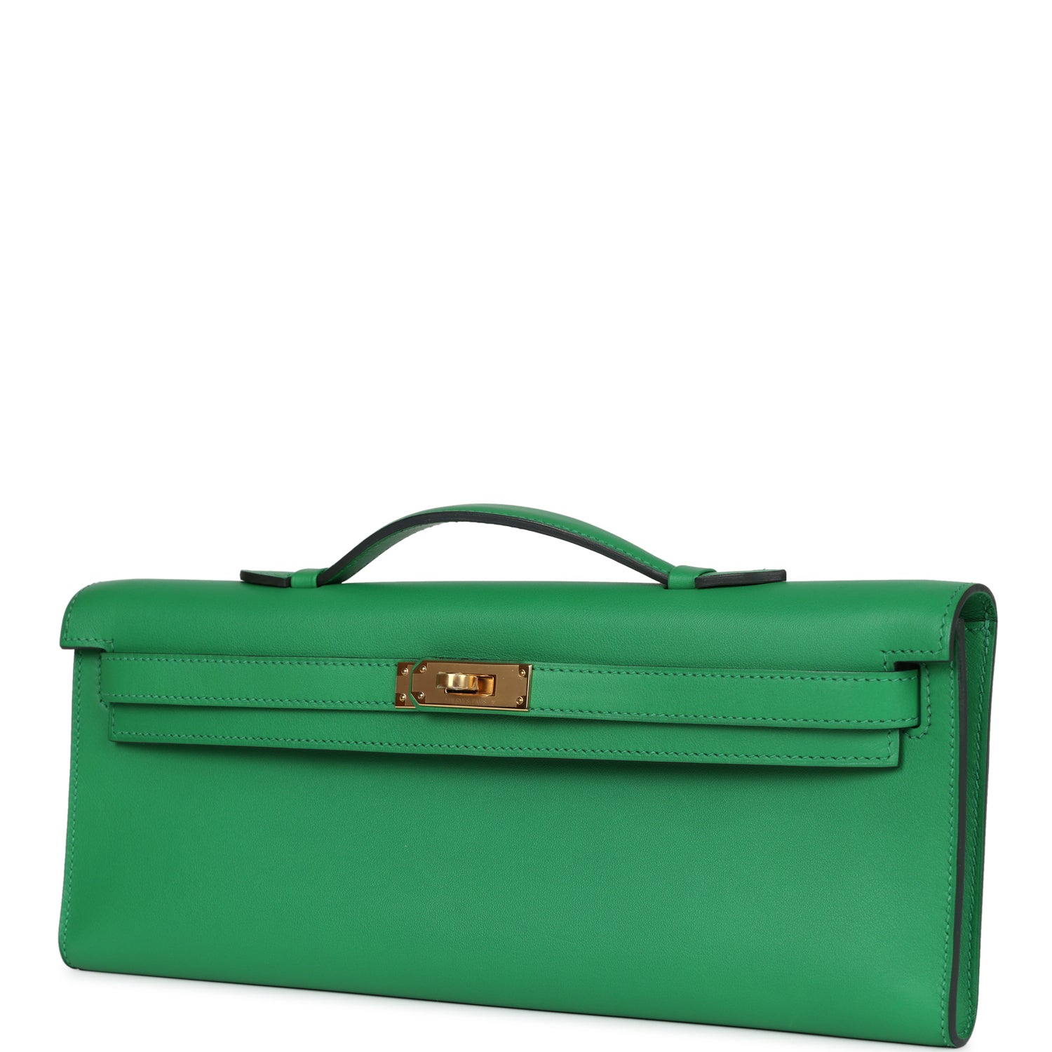 This Kelly Cut is inBambou swift leather with gold hardware and has tonal stitching, two straps with front toggle closure and a top flat handle.