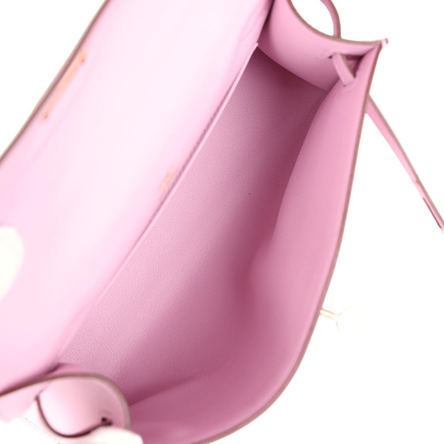 The interior is lined with Mauve Sylvestre lambskin and has an open wall pocket.