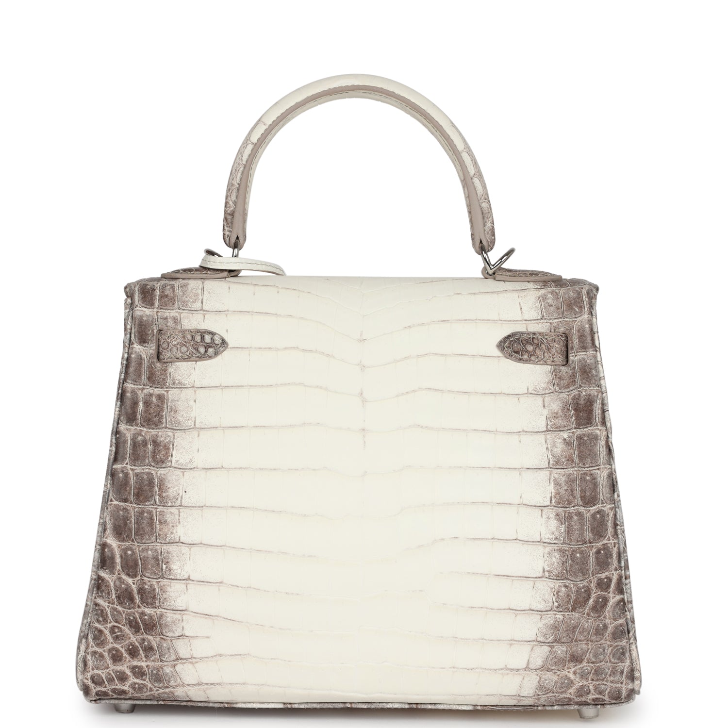 This Retourne style, Kelly is in Himalaya Matte Niloticus Crocodile leather with palladium hardware and has contrast stitching, front flap, two straps with center toggle closure, clochette with lock and two keys, single rolled handle and removable strap.