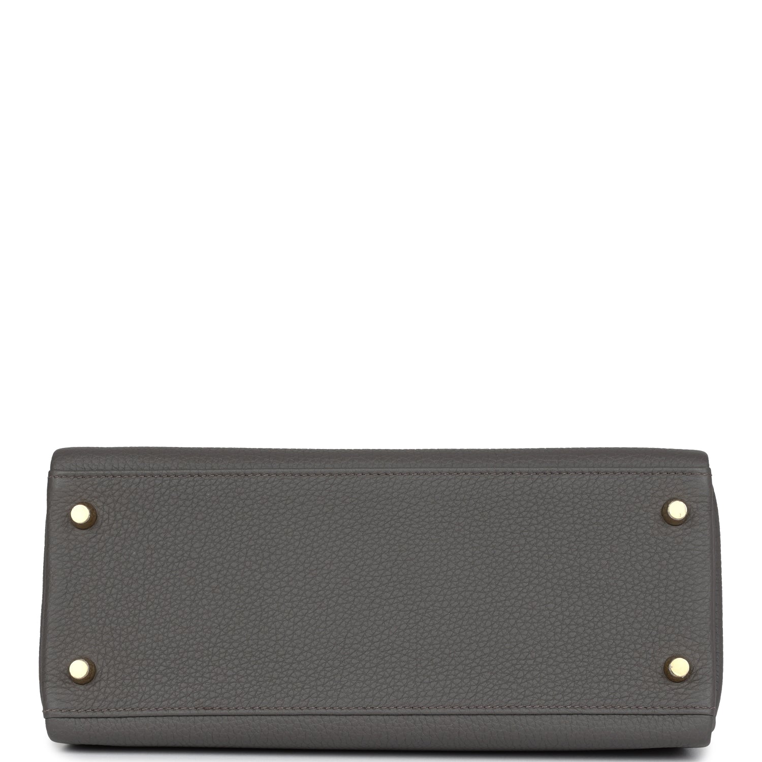 This Kelly, in the Retournestyle, is inEtain togo leather with gold hardware and has tonalstitching,front flap, two straps with center toggle closure, clochette with lock and two keys, single rolled handle and removable shoulder strap.