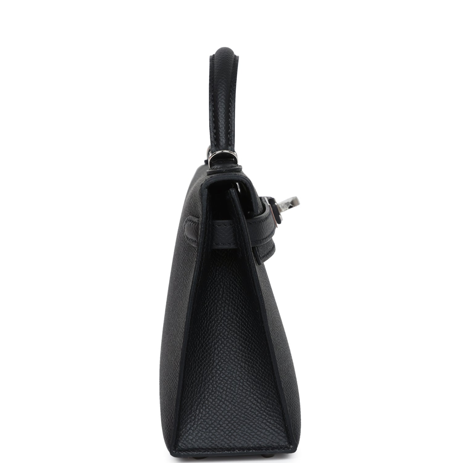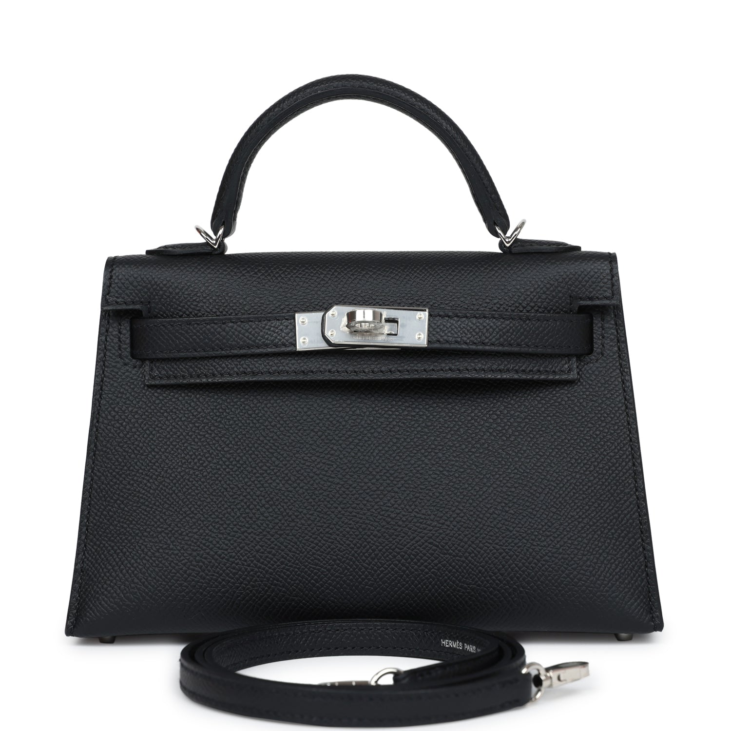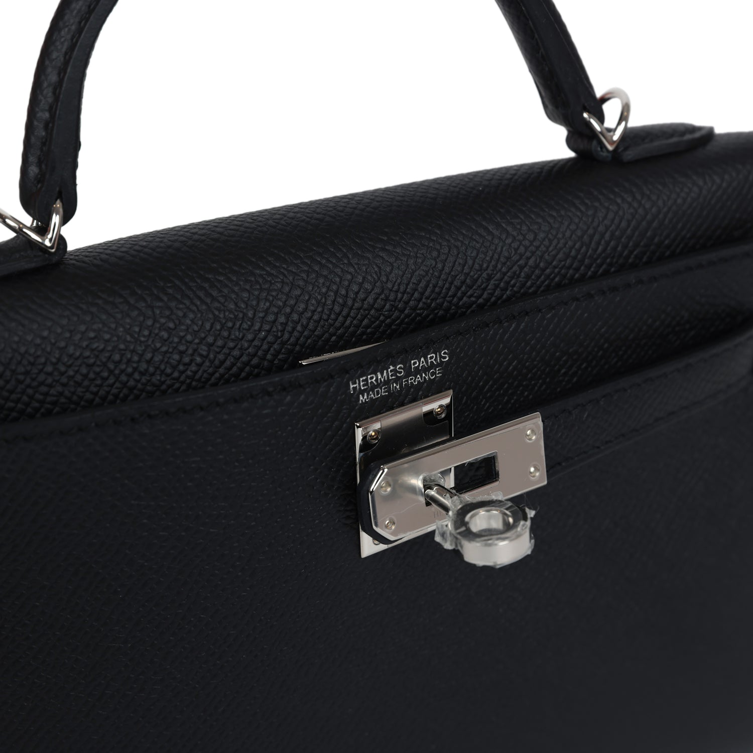 This Kelly, in the Sellier style, is in Black epsom leather with palladium hardware andhastonal stitching, two straps with front toggle closure, single rolled handle and removable shoulder strap.