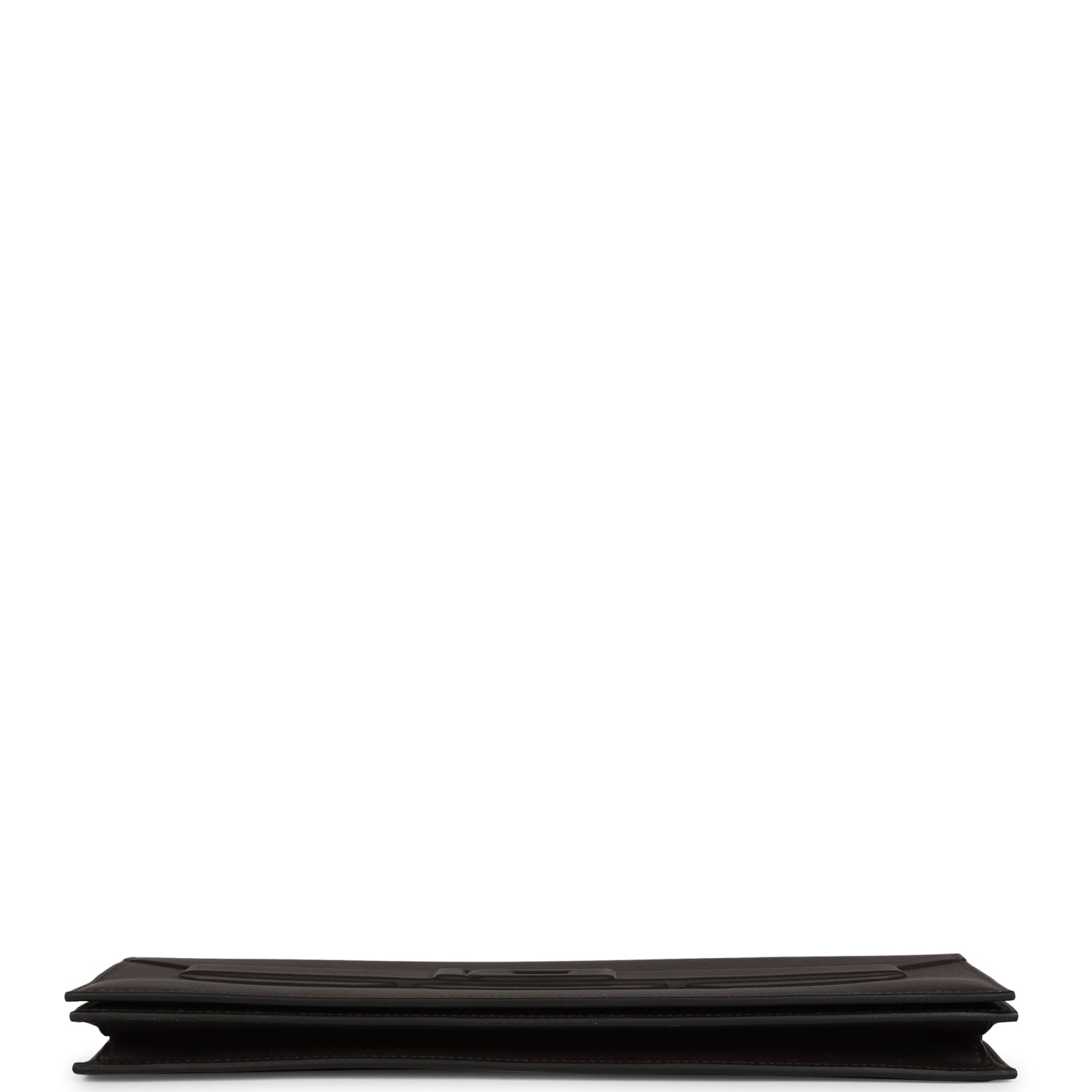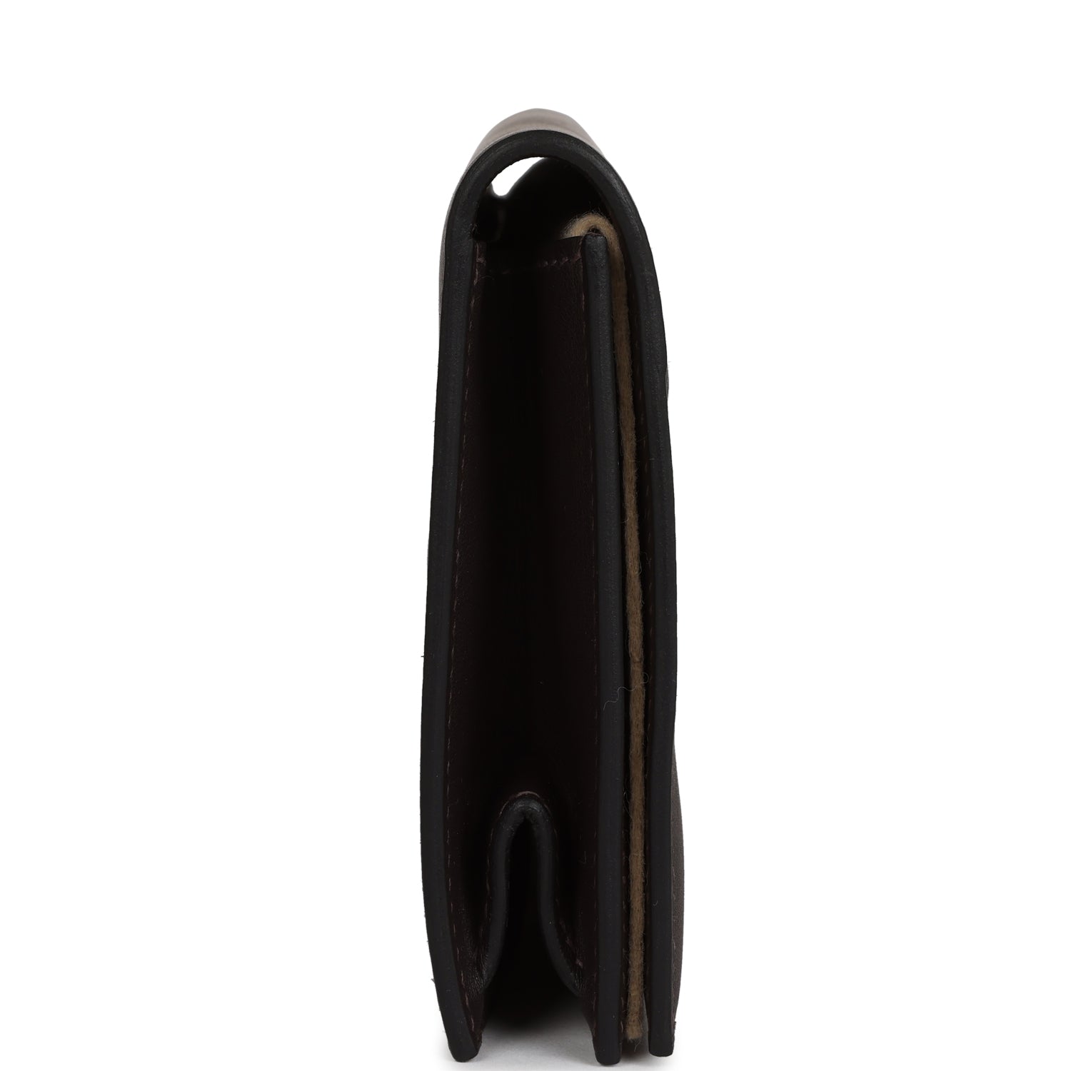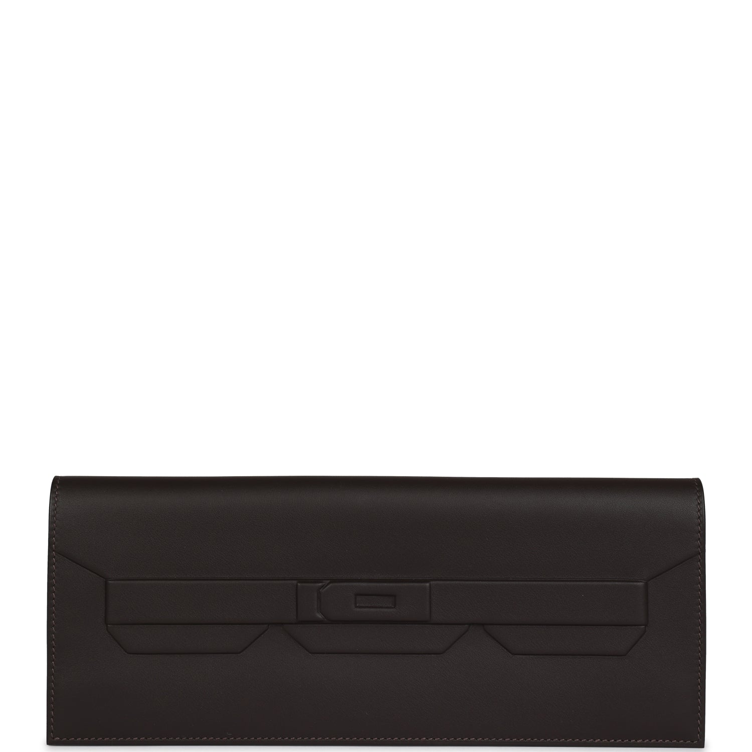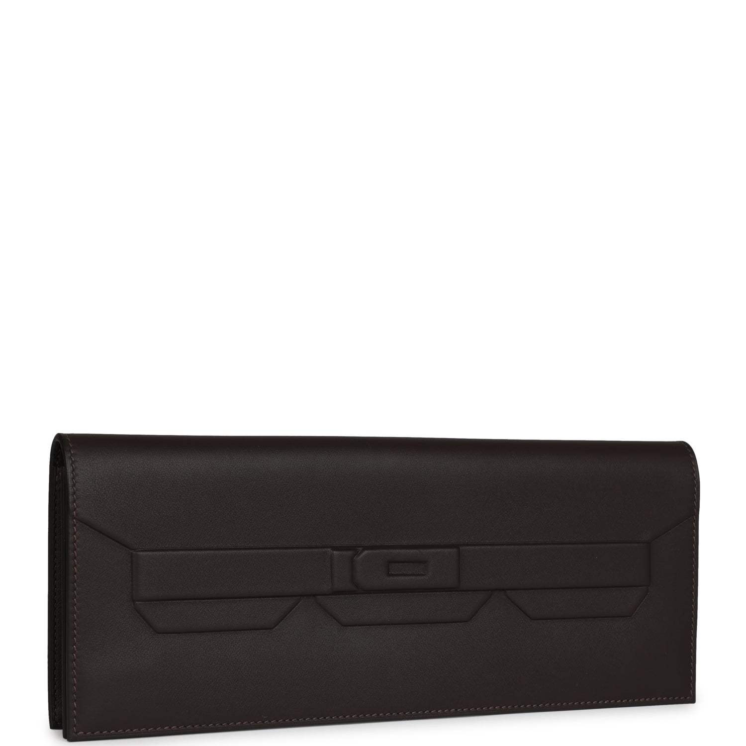 This Kelly Cut Shadow is inEbeneswift leather and hastonal stitching, embossed straps with embossed front toggle closure.