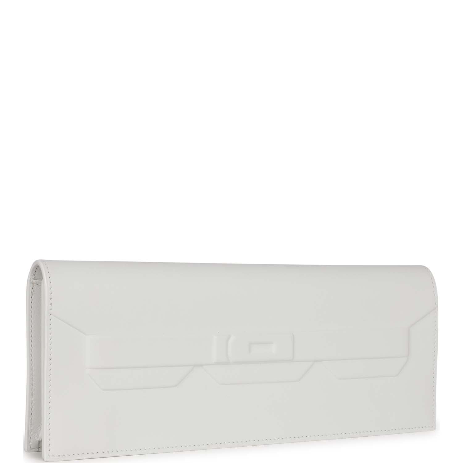 This Kelly Cut Shadow is inNew Whiteswift leather and has tonal stitching, embossed straps with embossed front toggle closure.