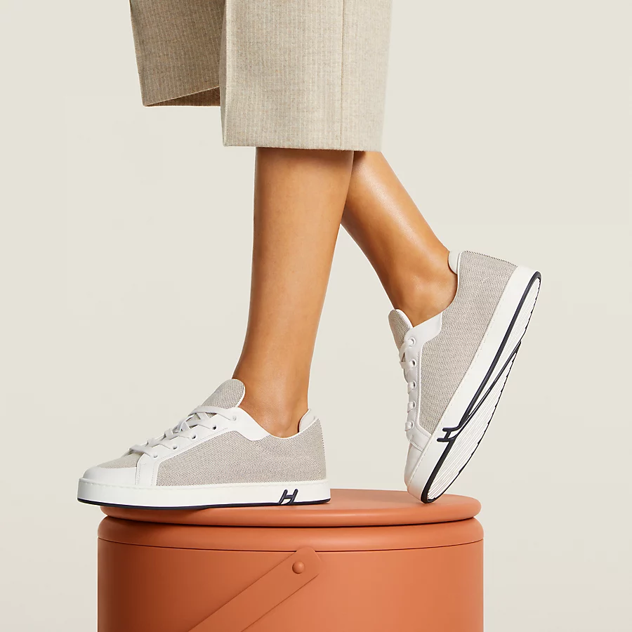 Sneaker in H canvas, calfskin and suede goatskin with signature ‘H’ detail.