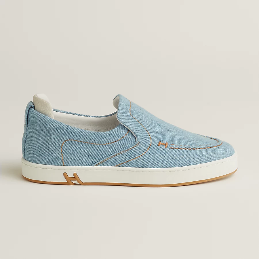 Slip-on sneaker in denim and suede goatskin with signature ‘H’ detail.
