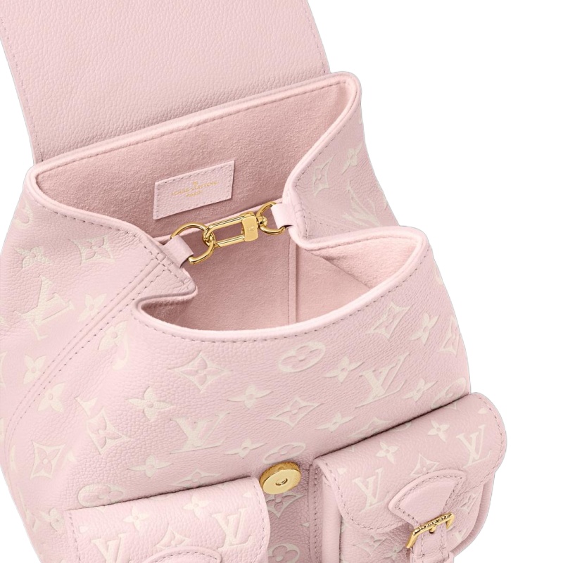A fresh take on the refined LV Milky Way collection, this Backup bag showcases a feminine bicolor palette for the season. It is crafted from signature Monogram Empreinte leather, elevated with gold-toned hardware for a delicate finish. Functional and chic, the design offers plenty of pockets to store essentials and is roomy enough to fit a large wallet inside.