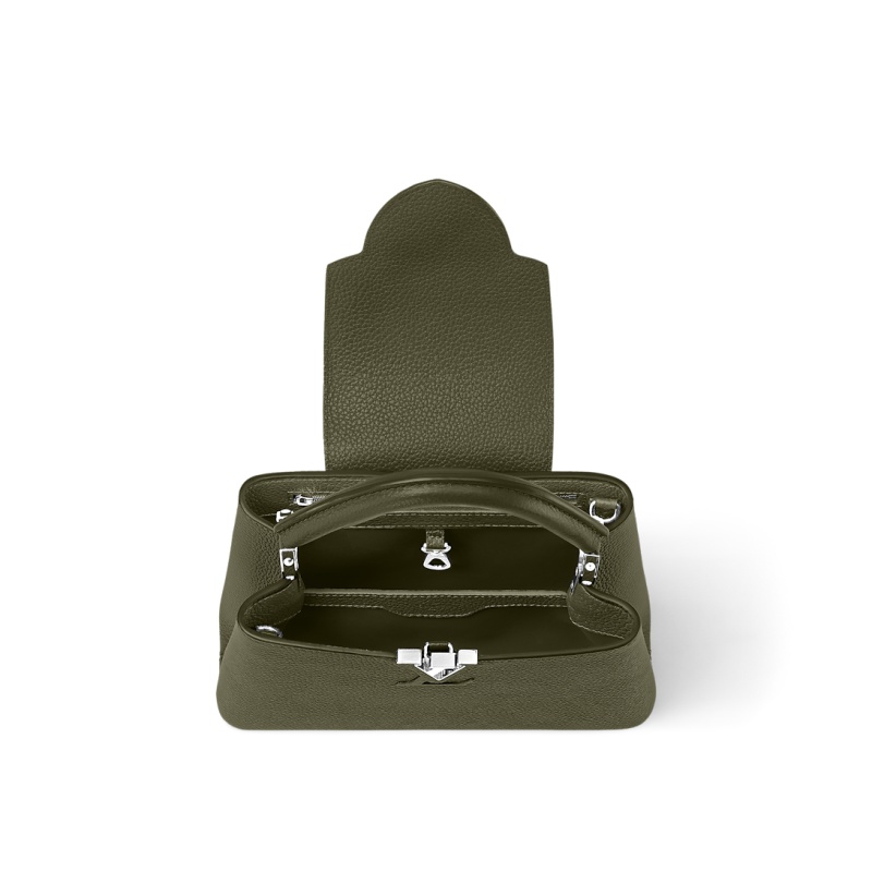 Fashioned from full-grain Taurillon leather, the now-classic Capucines BB handbag displays a host of House signatures:leather-wrapped LV Initials, jewel-like handle mounts inspired by historic trunks, and a distinctive flap with a Monogram Flower motif. Timelessly elegant, this charming model can be carried by hand or worn cross-body on its detachable strap. First launched in 2013, the Capucines is named for the Parisian street where Louis Vuitton first opened shop, in 1854.