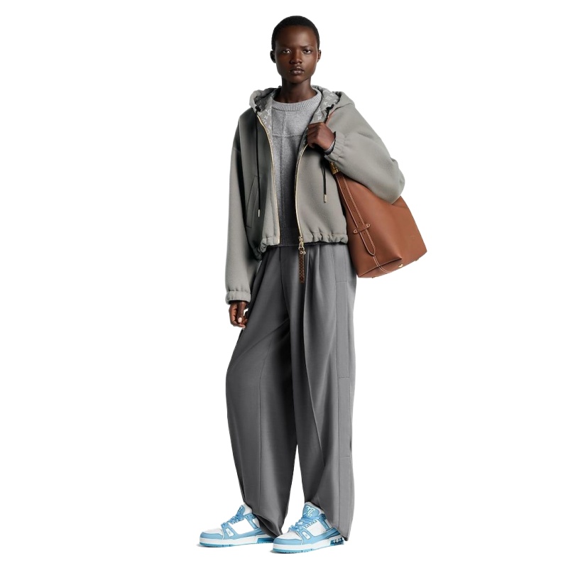 The iconic LV Trainer sneaker, originally designed for men by Virgil Abloh, is reinterpreted for women. This version comes in grained calf leather, which is partially debossed with the Monogram pattern, while its two-tone, pastel color scheme adds a feminine touch. This model is notable for its rubber signatures and technical outsole with Monogram Flowers
