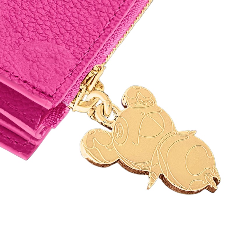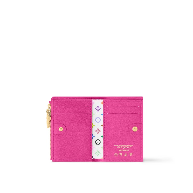 The Lisa wallet is a daily essential in a practical compact design featuring a fastened coin pocket, a bill compartment and multiple card slots. It is crafted from the House’s elegant Monogram Empreinte leather in a fresh seasonal shade from the Louis Vuitton x Murakami collection, complete with a glimpse of a multicolored Monogram motif on the inside. A golden Panda-shaped pull adds a spirited statement to the zipper.