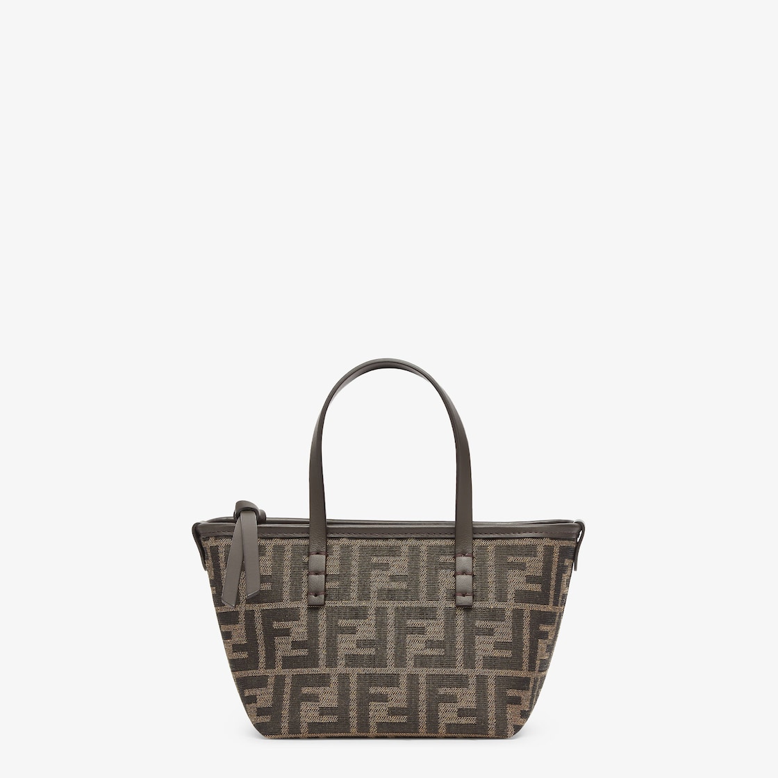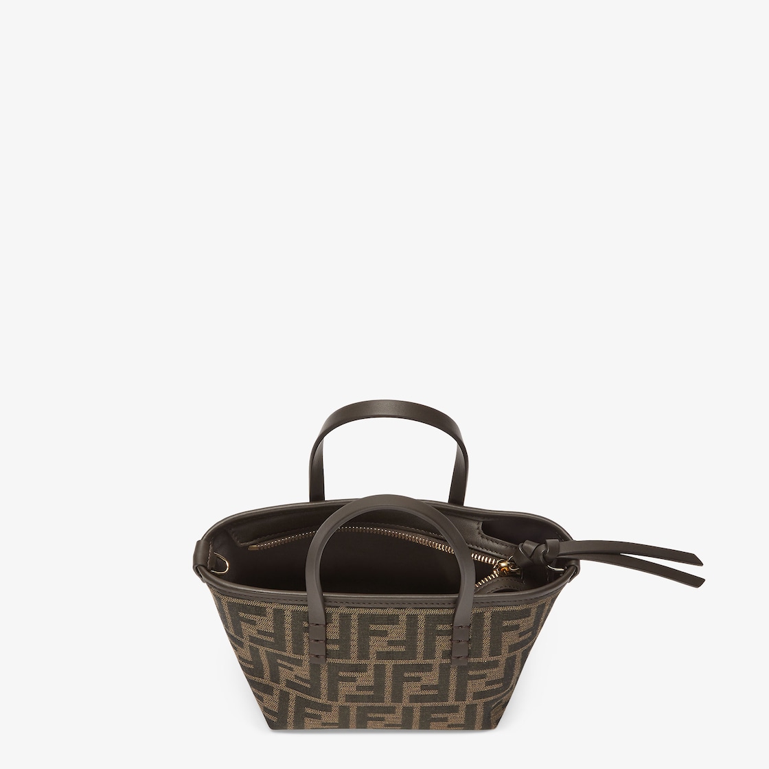 Mini shopping bag made of jacquard fabric with an iconic brown FF motif. Embellished with dark brown leather and a zip fastening with a long, knotted leather zip pull.