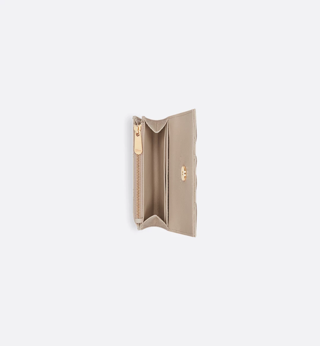 The My Dior Glycine wallet is distinguished by its compact and practical design. Crafted in powder beige Cannage lambskin, it is enhanced by D.I.O.R. charms on the front. Accommodating all the essentials, the refined accessory will fit anywhere and can be paired with other My Dior creations.