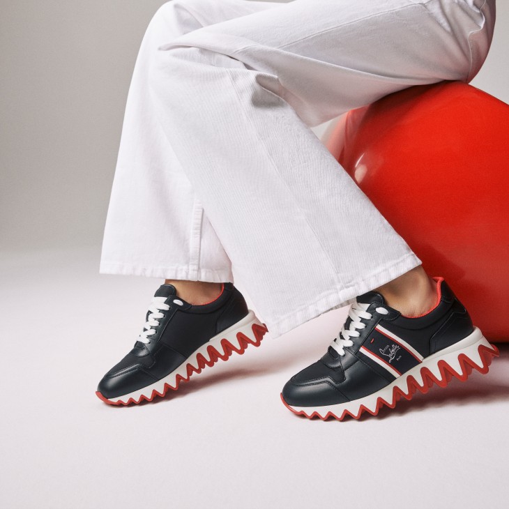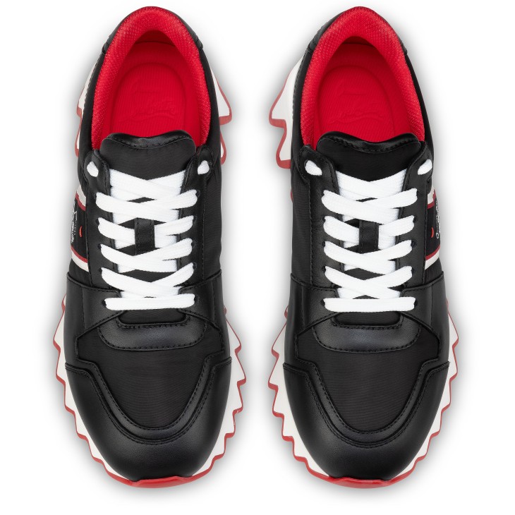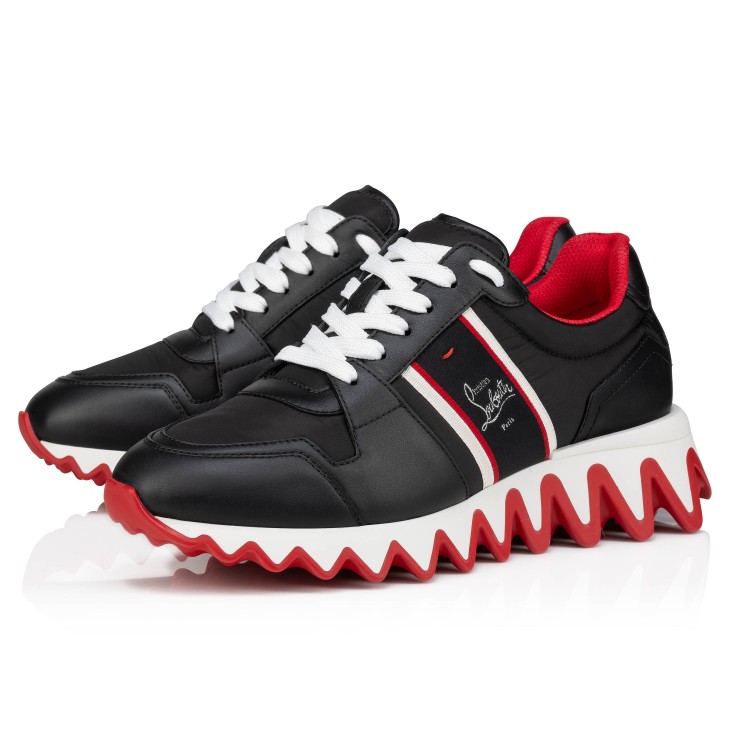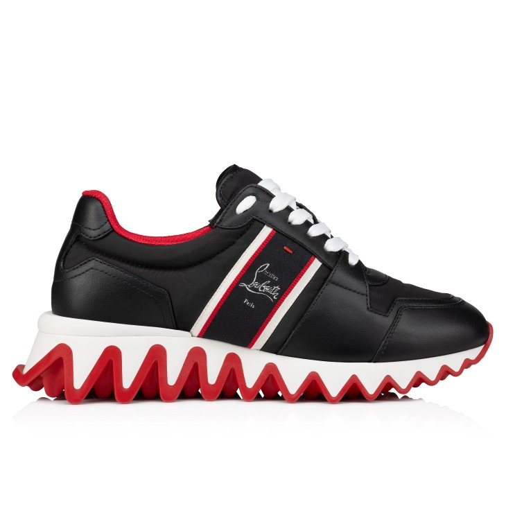 The Nastroshark women’s sneaker has an audacious style. Inspired by the iconic Loubishark, it sits on a two-colour neoprene sole reminiscent of shark teeth. It is crafted from black calf leather and padded nylon. This sporty style features a signature Maison Christian Louboutin three-colour F.A.V. ribbon.
