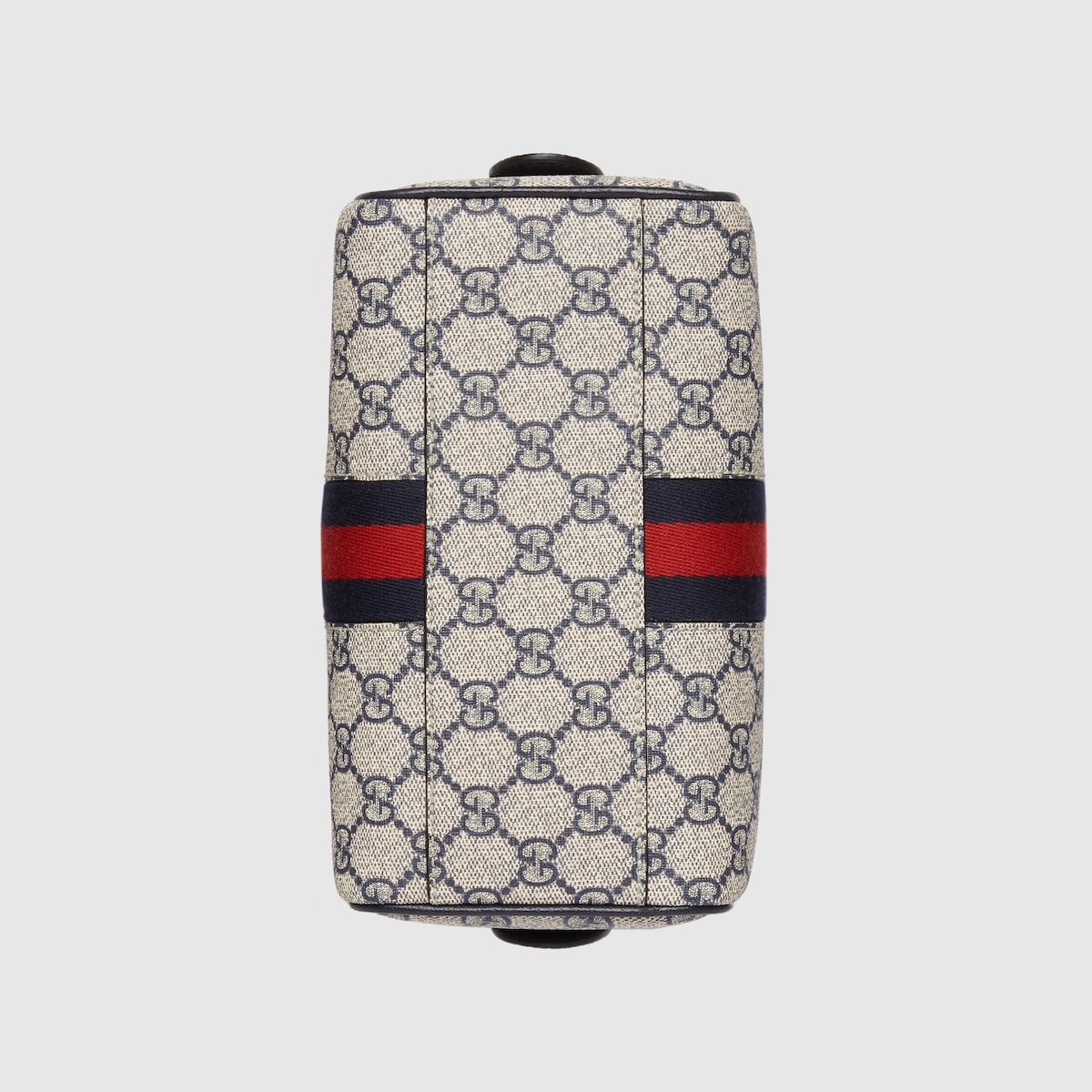 A signature fabric, GG Supreme canvas has become a staple throughout the Gucci universe. Reinterpreted through the Gucci lens, the material appears throughout the latest collections. Here, this mini top handle bag is crafted with the all-over monogram motif. Completing the logo feel, the signature Double G hardware completes the style.