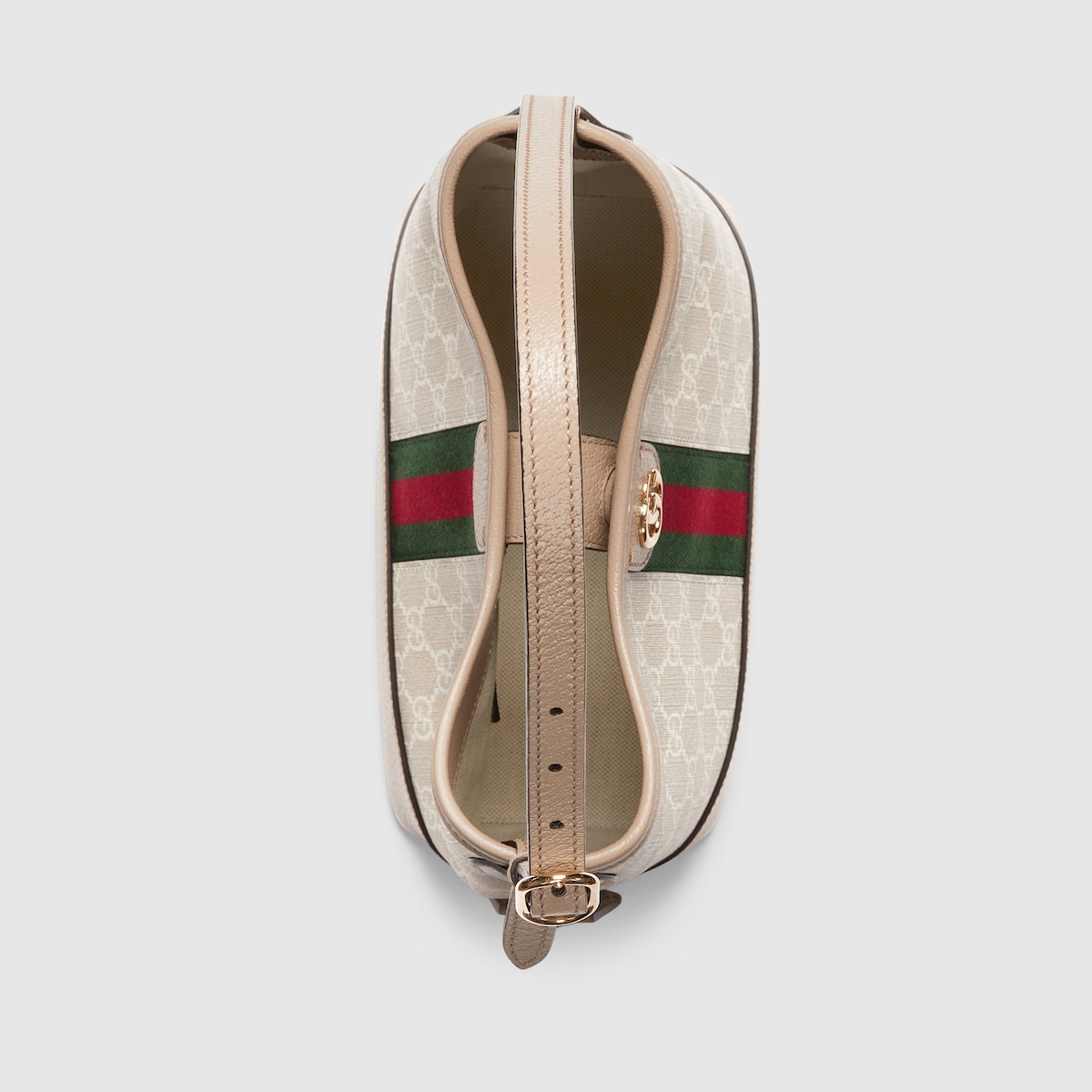 Inspired by the summer spirit and beach clubs on the Italian coast, this item is part of Gucci Lido. The Ophidia is reinvented in new and unexpected ways in this small-sized piece, which blends the open bucket design and shoulder bag style. It is crafted in the House’s signature GG Supreme canvas in the color combination of Beige and white.
