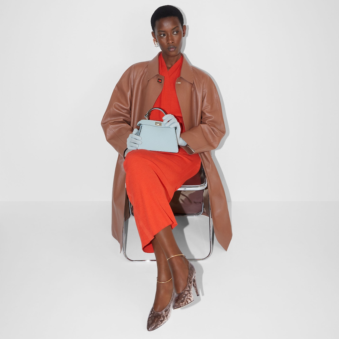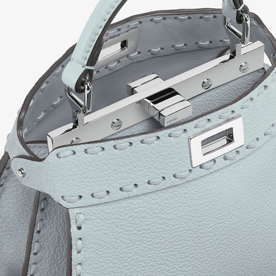 Iconic Peekaboo ISeeU bag in an ideal compact size, made with 306 hand-sewn tone-on-tone macro topstitches, an emblem of the iconic Selleria workmanship.