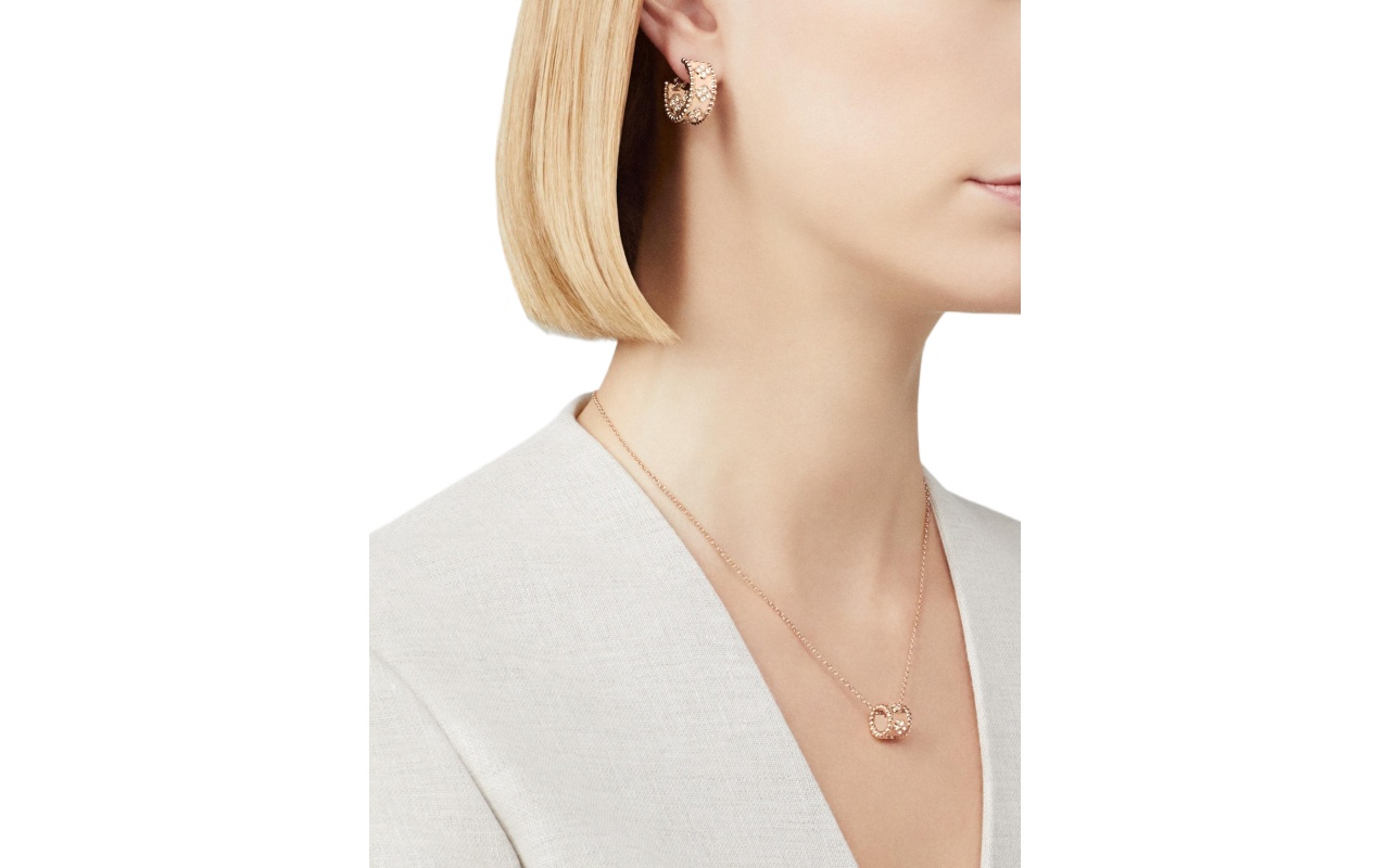 Perlée clovers pendant, 18K rose gold, round diamonds; diamond quality DEF, IF to VVS. STONE Diamond:16 stones, 0.18 carat