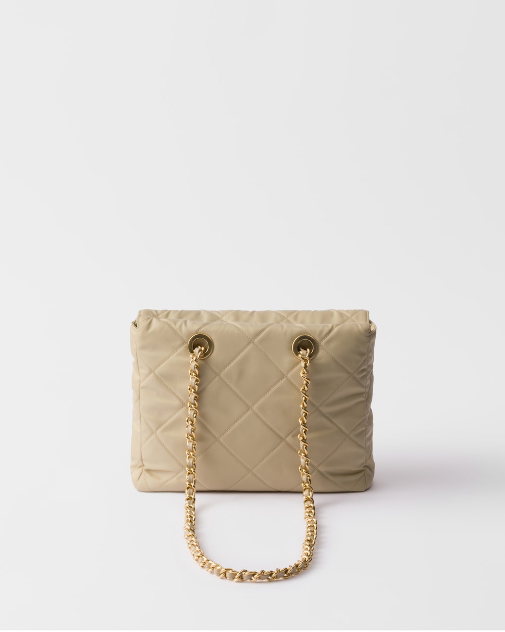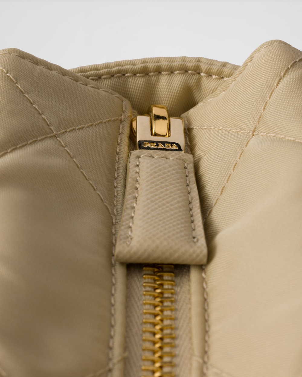 Padding and top-stitching enhance the versatile design of this bag made of Re-Nylon, a technical fabric that blends artisan crafting and innovation.