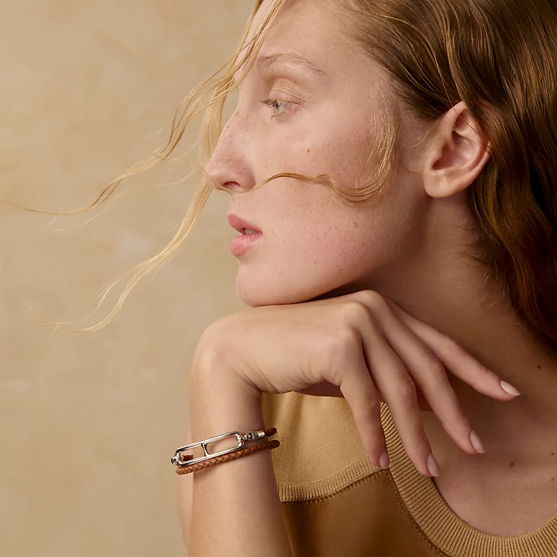 Swift calfskin braided double wrap bracelet with Roulis lock. Made in Italy. Metal: Palladium-plated Wrist circumference: 14.5 to 15.5 cm Braid width: 0.3 cm