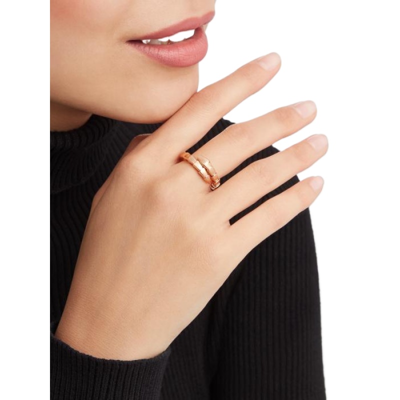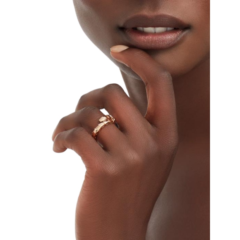 The Serpenti Viper 18K rose gold ring combines pure aesthetics, circumferential shapes and charming charm in an iconic style, which succinctly interprets the endless transformation and evolution of Bvlgari’s classic works. This charming jewelry piece embodies the powerful characteristics of the mysterious snake’s continuous transformation, inspiring people to actively seek change and regard it as an inexhaustible source of strength and confidence. It is suitable for mixing and matching at will, providing a variety of styling options, showing the flexible and versatile style of the series.