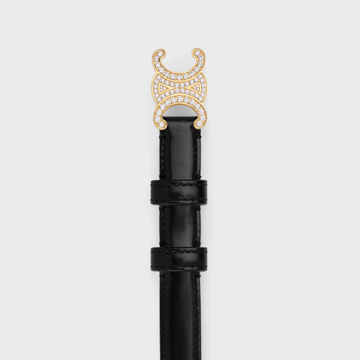 Taurillon Middle-Waist Gold finishing Width : 0.7 IN (1.8 CM) Triomphe Buckle with collar stud Buckle paved with crystals Reference : 45BIG3A01.38NO