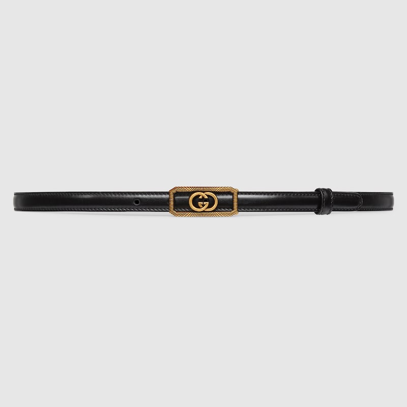 Black leather Gold-toned hardware Interlocking G buckle .6″ width Made in Italy