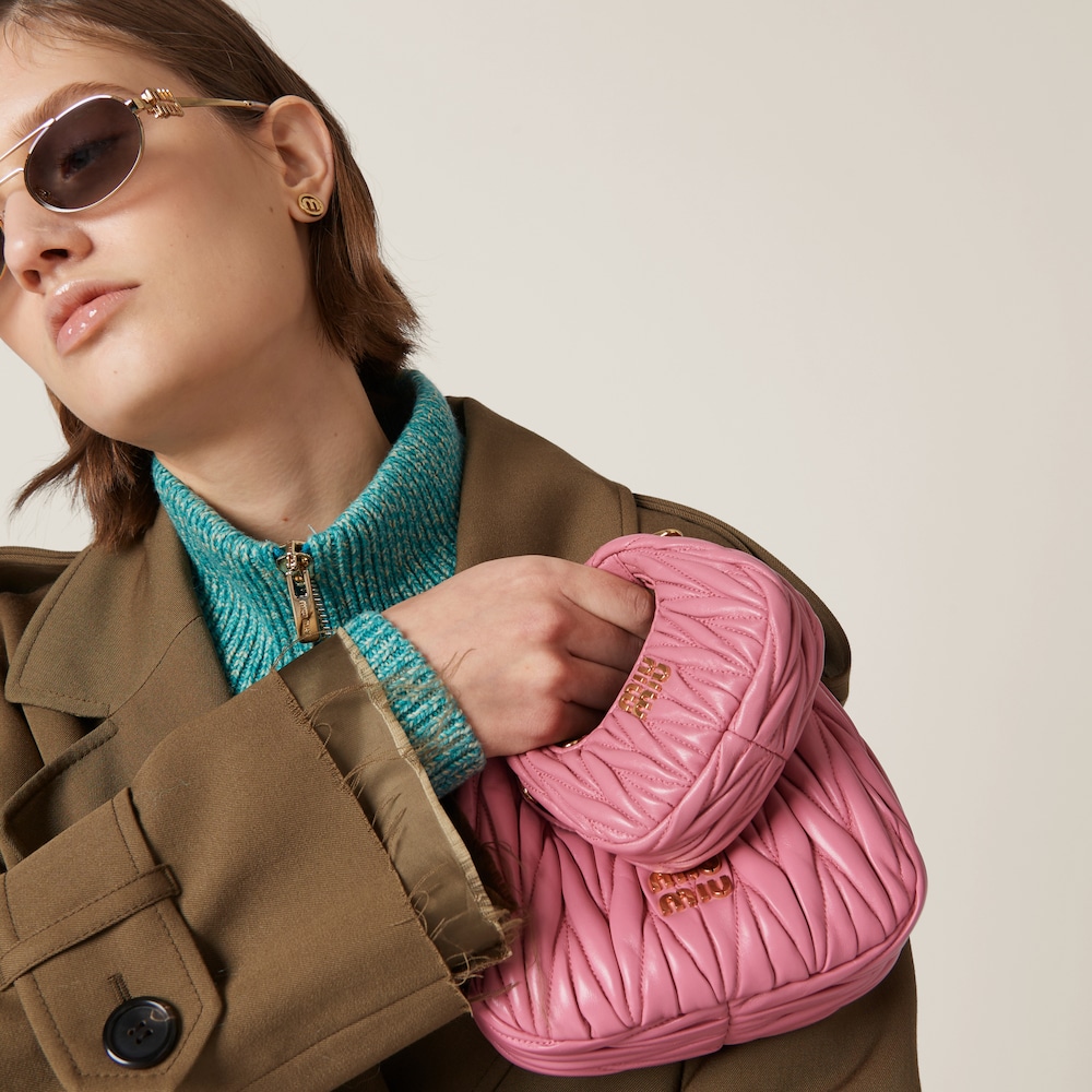 This mini version of the Wander matelassé nappa leather bag is characterized by the sophisticated three-dimensional effect created by the exquisite workmanship. The hobo shape, blending retro inspirations and contemporary elegance, becomes a new synonym of modern femininity.