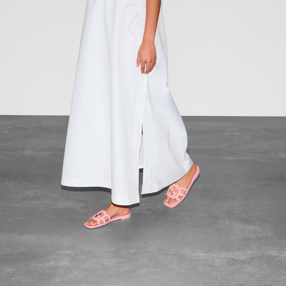 Inspired by the summer spirit and beach clubs on the Italian coast, this item is part of Gucci Lido. Emblematic codes of the House and refined patterns are reinterpreted in contemporary ways for the Pre-Fall collection. This slide sandal appears in pink rubber with an Interlocking G cut-out enriching the style with a distinct logo feel.