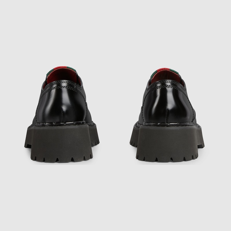 Original House details first introduced in the 1950s are reinterpreted through a romantic lens. The Web stripe??inspired by the equestrian world??has become the hallmark of a cultured club and is reintroduced in new forms. This lace-up shoe is crafted in shiny leather and defined by a rubber lug sole.