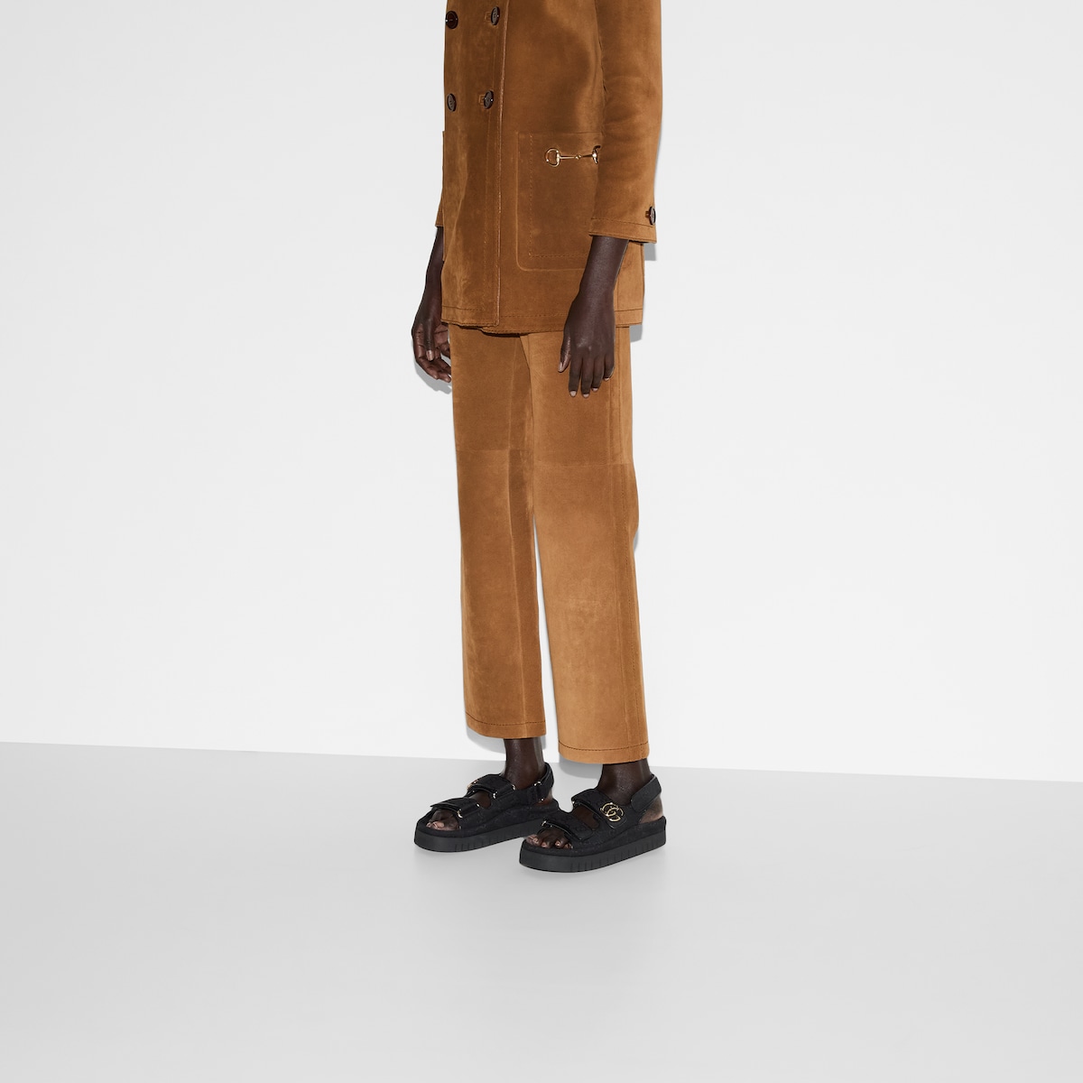 Gucci’s contemporary narrative explores a unique blend of traditional elements and the much-loved symbols of the House. This pair of sandals is defined by the beloved Double G hardware, adding a subtle logo feel, mixed with the versatility of the Velcro straps.