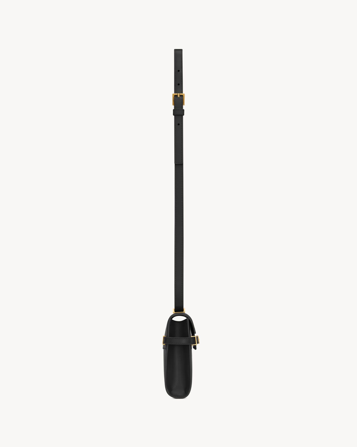 Mini bag with a small flap on top and compression tabs on the sides, featuring an adjustable strap.